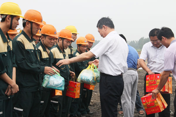 杜福生總經理代表集團職工對區領導的慰問表示誠摯感謝。面對持續的高溫天氣,集團公司堅持以職工為本,制定了防暑降溫工作方案,在生產任務較重的情況下,合理安排了工作休息時間,為一線員工準備了西瓜、冰鎮飲料等降暑食品以及藿香正氣水等物品,將公司宴會廳空調打開,為生產員工提供了休息場所,保障了一線職工的身體健康和企業的正常生產運營。廣大職工紛紛表示,將牢記領導的關懷和叮囑,以飽滿的工作熱情投入的生產、建設中去,用努力工作回報各級領導的關心和厚愛。
