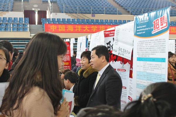 3月28日,繼青島理工大學(xué)2013年春季畢業(yè)生雙選會(huì)結(jié)束后,經(jīng)典集團(tuán)又一次組織參加中國(guó)海洋大學(xué)畢業(yè)生雙選會(huì)。我公司董事長(zhǎng)苗樹(shù)文,總經(jīng)理杜福生等領(lǐng)導(dǎo)一同參加了此次雙選會(huì)。