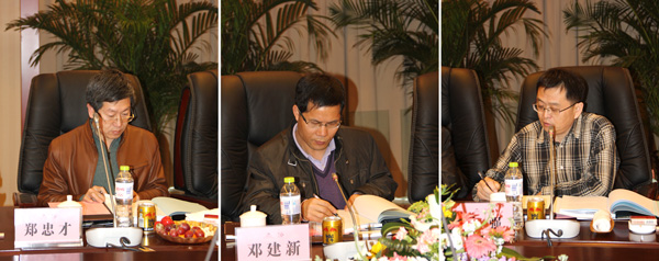 科技成果鑒定會(huì)主任委員鄧建新(中間)副主任委員鄭忠才、王強(qiáng)現(xiàn)場(chǎng)評(píng)議