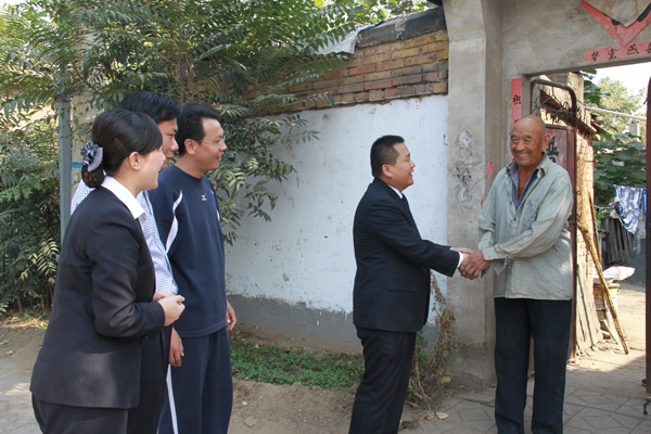 集團(tuán)公司董事長苗樹文到興隆莊鎮(zhèn)敬老院,與老人親切交談