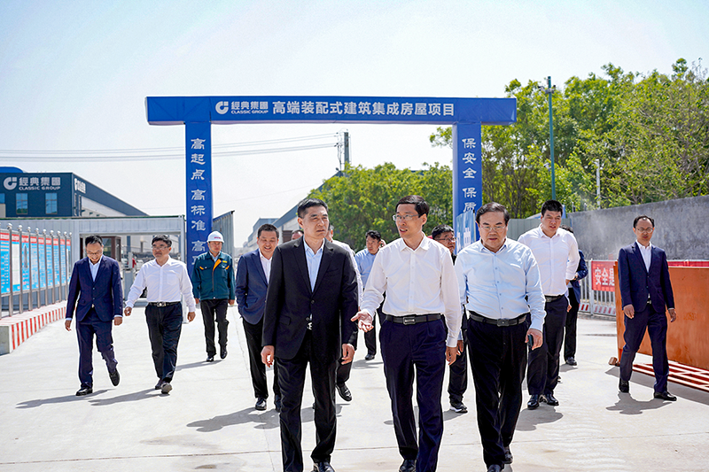 5月1日,濟(jì)寧市兗州區(qū)委副書記、區(qū)長王營一行到高端裝配式建筑集成房屋項目現(xiàn)場調(diào)研,指導(dǎo)省重大項目建設(shè)、安全生產(chǎn)等有關(guān)工作。兗州工業(yè)園區(qū)黨工委書記、管委會主任王智,經(jīng)典集團(tuán)董事會主席苗樹文,董事長史振華,區(qū)政府辦、發(fā)改局、新兗鎮(zhèn)主要負(fù)責(zé)人等陪同調(diào)研。