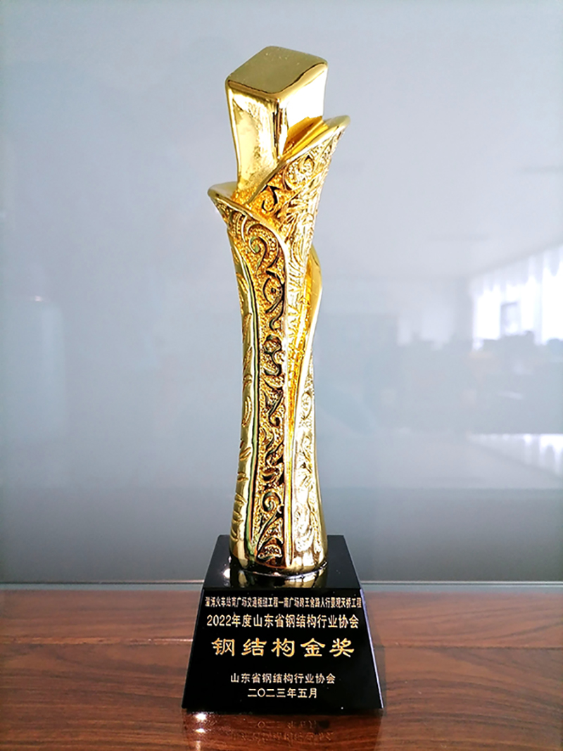 6月16—18日在環(huán)渤海地區(qū)鋼結(jié)構(gòu)行業(yè)發(fā)展峰會(huì)暨山東省鋼結(jié)構(gòu)行業(yè)協(xié)會(huì)年會(huì)上,山東經(jīng)典重工集團(tuán)股份有限公司承建的淄博火車站南廣場(chǎng)交通樞紐工程——南廣場(chǎng)跨王舍路人行景觀天橋工程榮獲2022年度山東省鋼結(jié)構(gòu)協(xié)會(huì)鋼結(jié)構(gòu)金獎(jiǎng)。