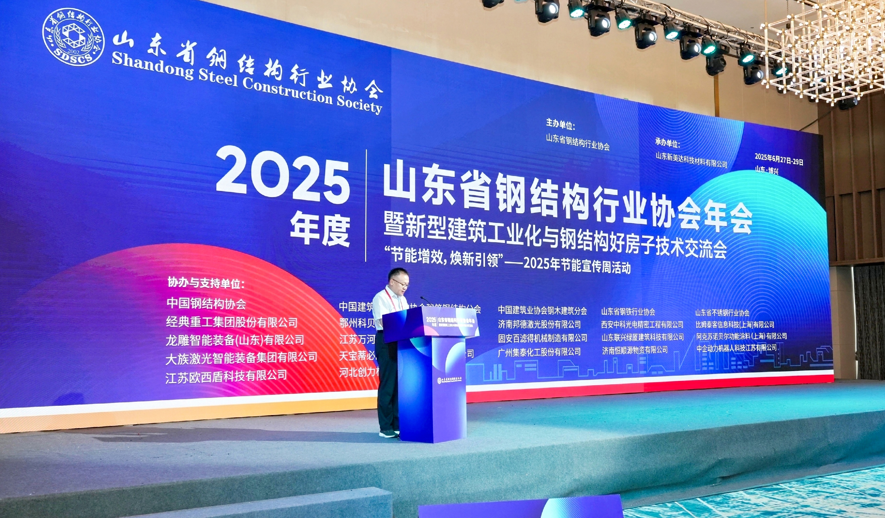 為全面落實國家“十四五”建筑業發展規劃關于“推廣智能建造與新型建筑工業化協同發展”的戰略部署,加快鋼結構建筑向智能化設計、工業化生產、數字化運維轉型升級,6月27—29日,2025年度山東省鋼結構行業協會年會暨新型建筑工業化與鋼結構好房子技術交流會在濱州市隆重舉辦,經典集團董事長史振華率領技術營銷團隊參加年會系列活動。